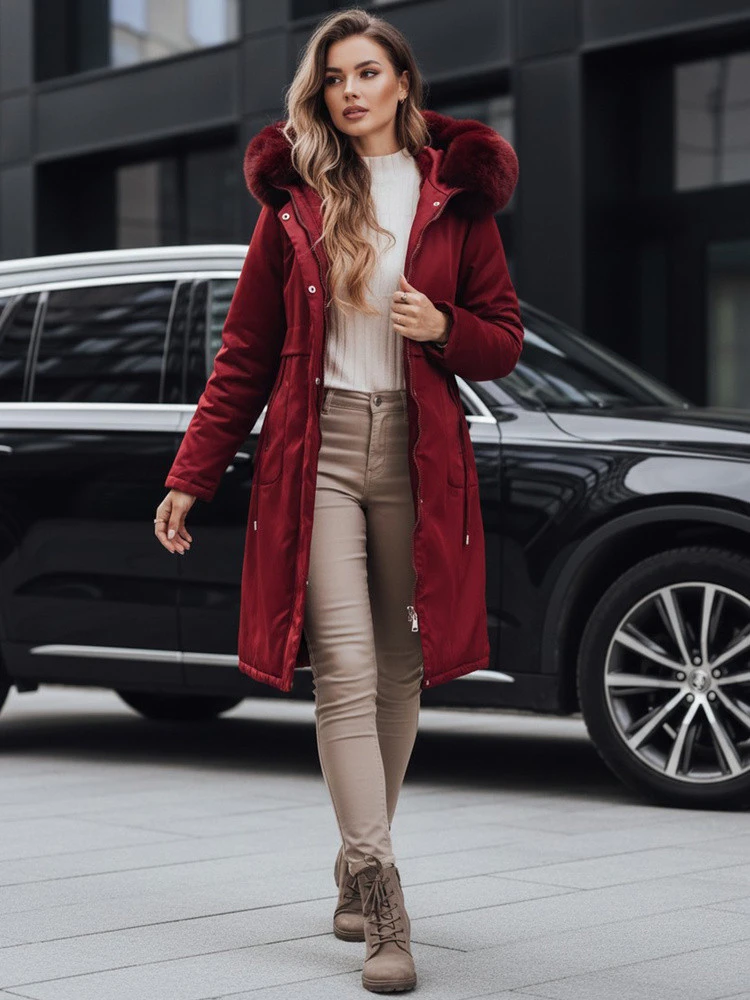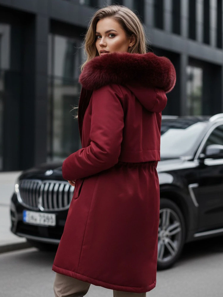 Dámská zimní bunda parka s kožešinou vínová FashionStreet TY5114
