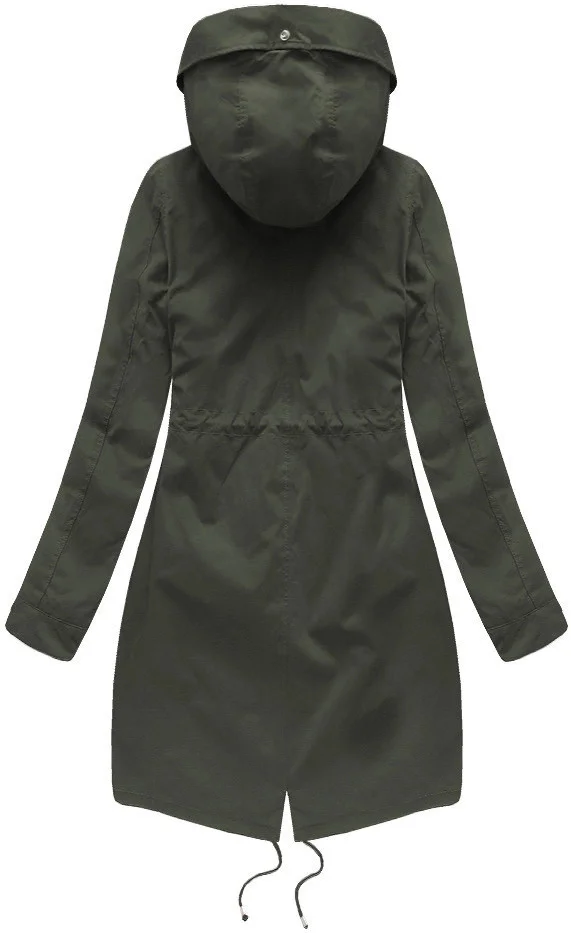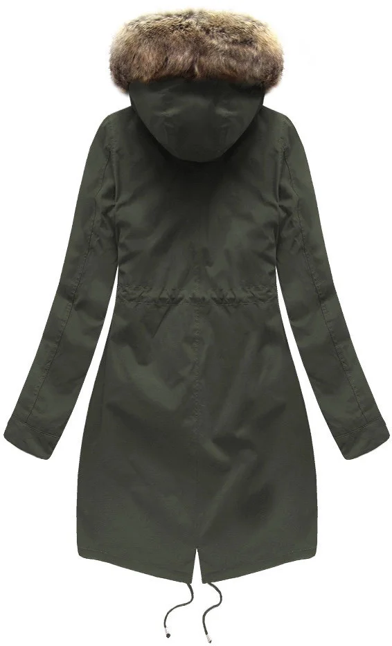 Dámská zimní bunda parka v army barvě s kapucí a odepínací kožešinovou podšívkou (7626BIG)
