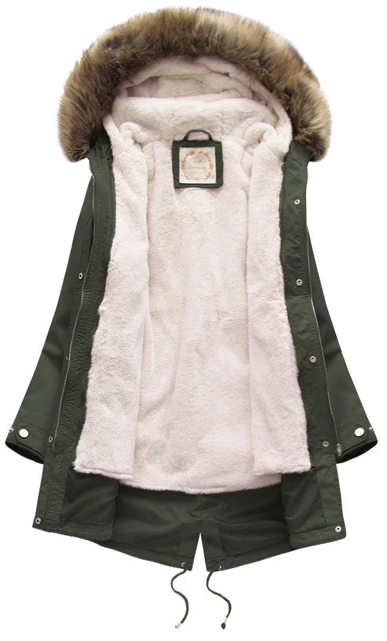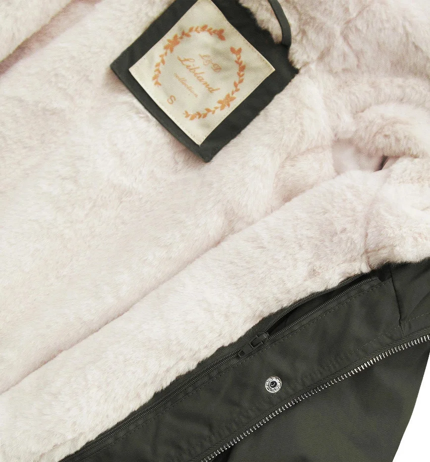 Přidání recenze k Dámská zimní bunda parka v army barvě s kapucí a odepínací kožešinovou podšívkou (7626BIG)