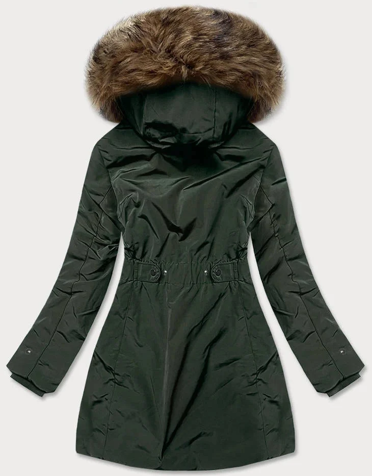 Dámská zimní bunda parka v army barvě s kožešinovou podšívkou (m-21501)