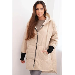 Dámská zimní bunda Plus Size prošívaná s kapucí béžová