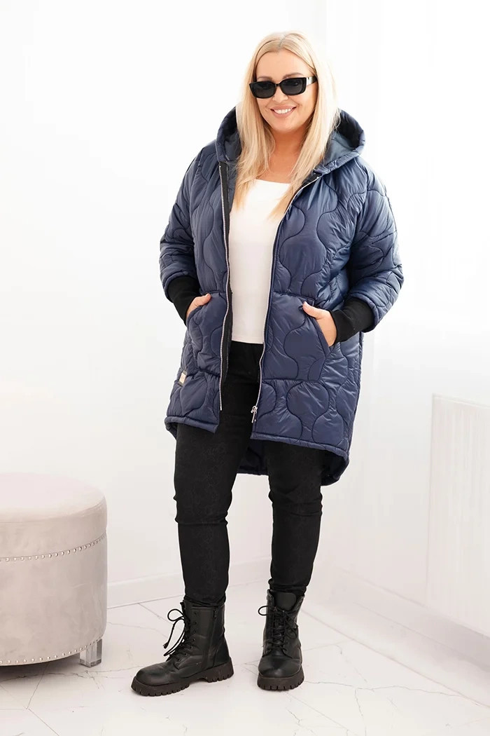 Dámská zimní bunda Plus Size prošívaná s kapucí granátová