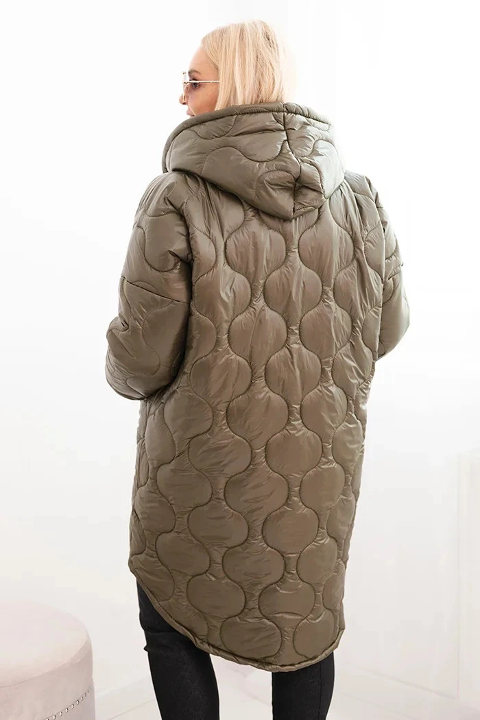 Dámská zimní bunda Plus Size prošívaná s kapucí khaki