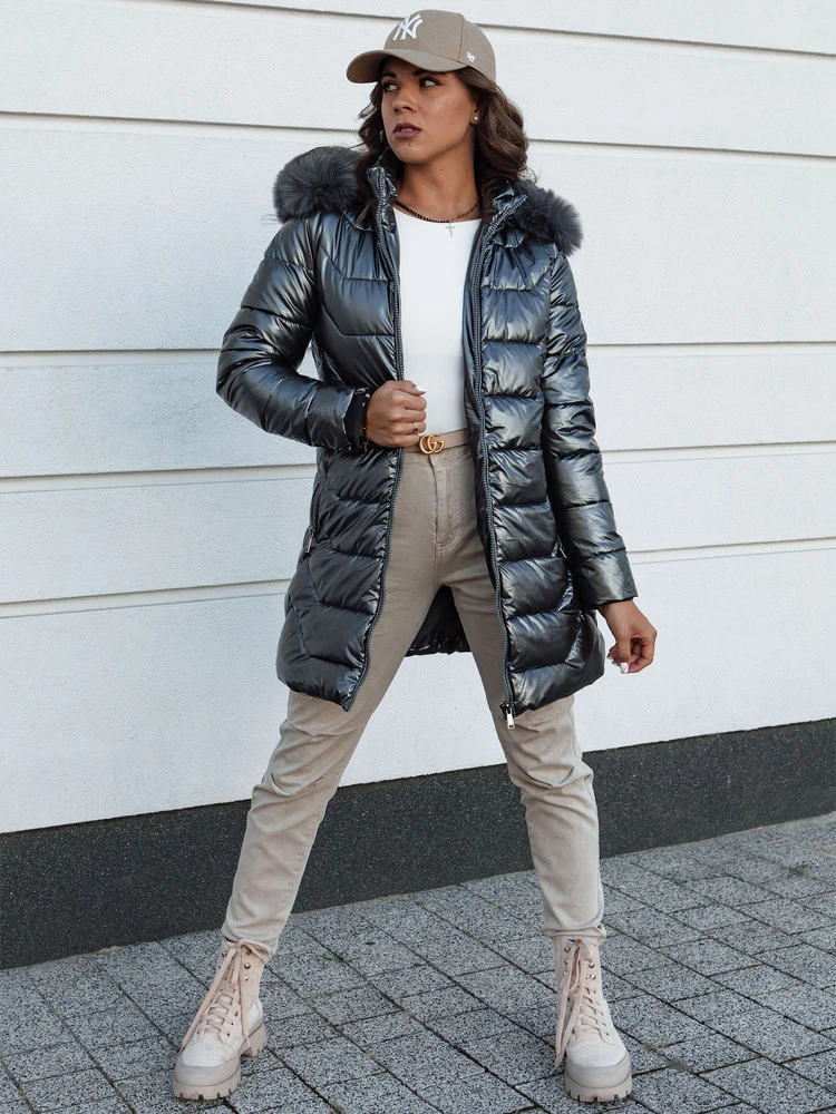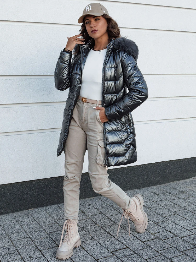 Přidání recenze k Dámská zimní bunda prošívaná dlouhá s kapucí SHINE šedá FashionStreet TY4564