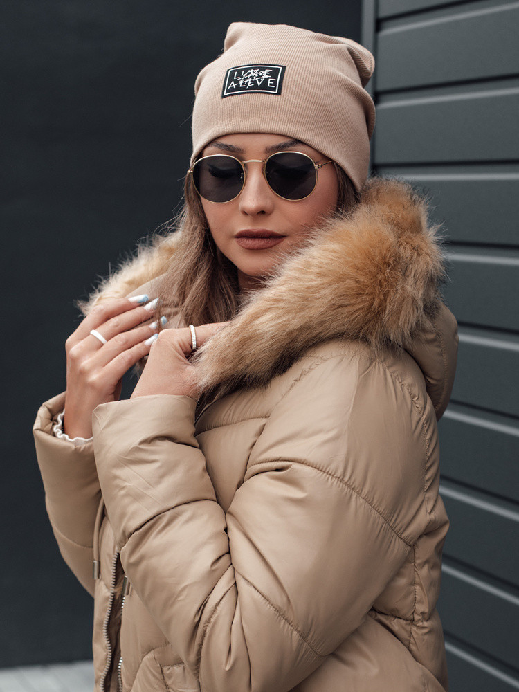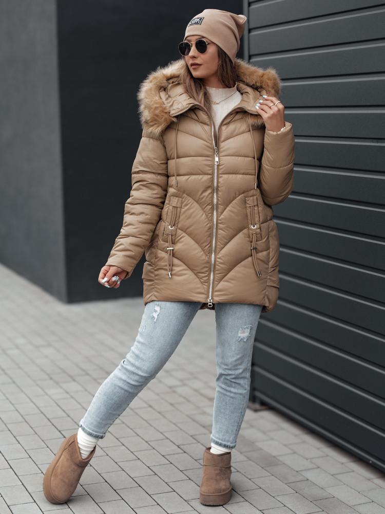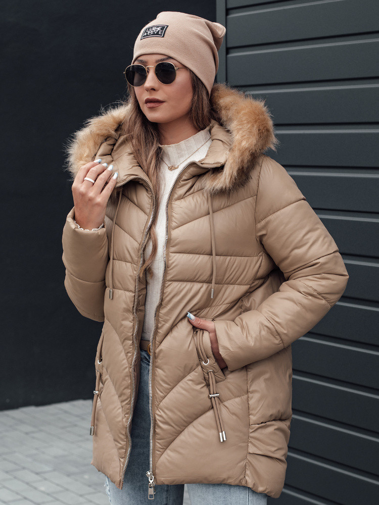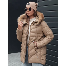 Dámská zimní bunda prošívaná s kapucí béžová model 21981009 - Dstreet