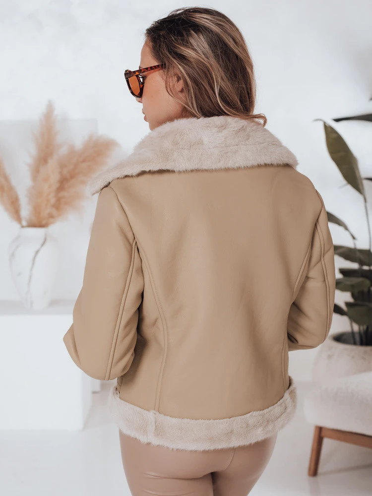 Modna kurtka damska z ekoskóry z ozdobnym futerkiem to propozycja na zimniejsze miesiące. Jej krótki fason świetnie układa się na sylwetce, a dodatki takie jak pasek czy suwaki dodają eleganckiego sznytu. Idealna do codziennych miejskich stylizacji w sezonie jesień/zima.