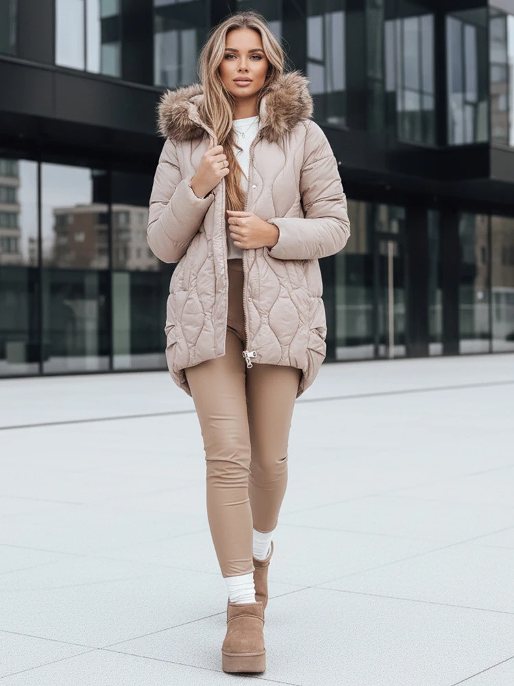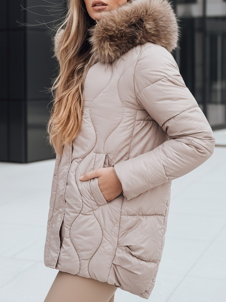 Dámská prošívaná zimní bunda s kožešinou TY5494 béžová