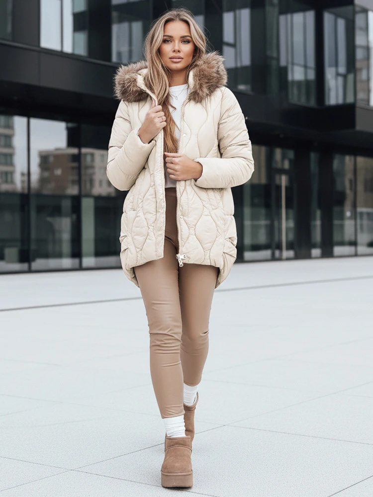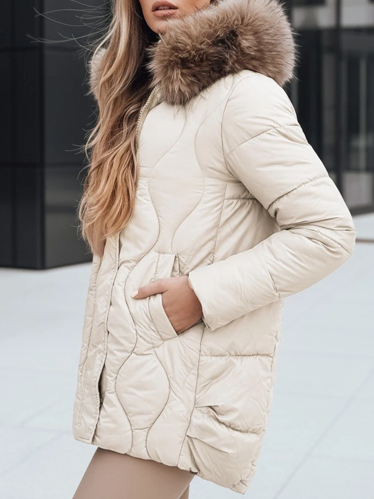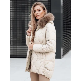 Dámská prošívaná zimní bunda s kožešinou TY5495 ecru