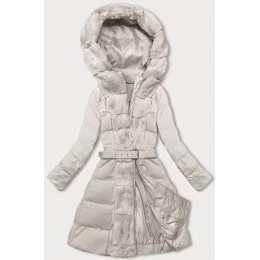 Dámská zimní bunda v barvě ecru s ozdobnou kožešinou (5M3158-254)