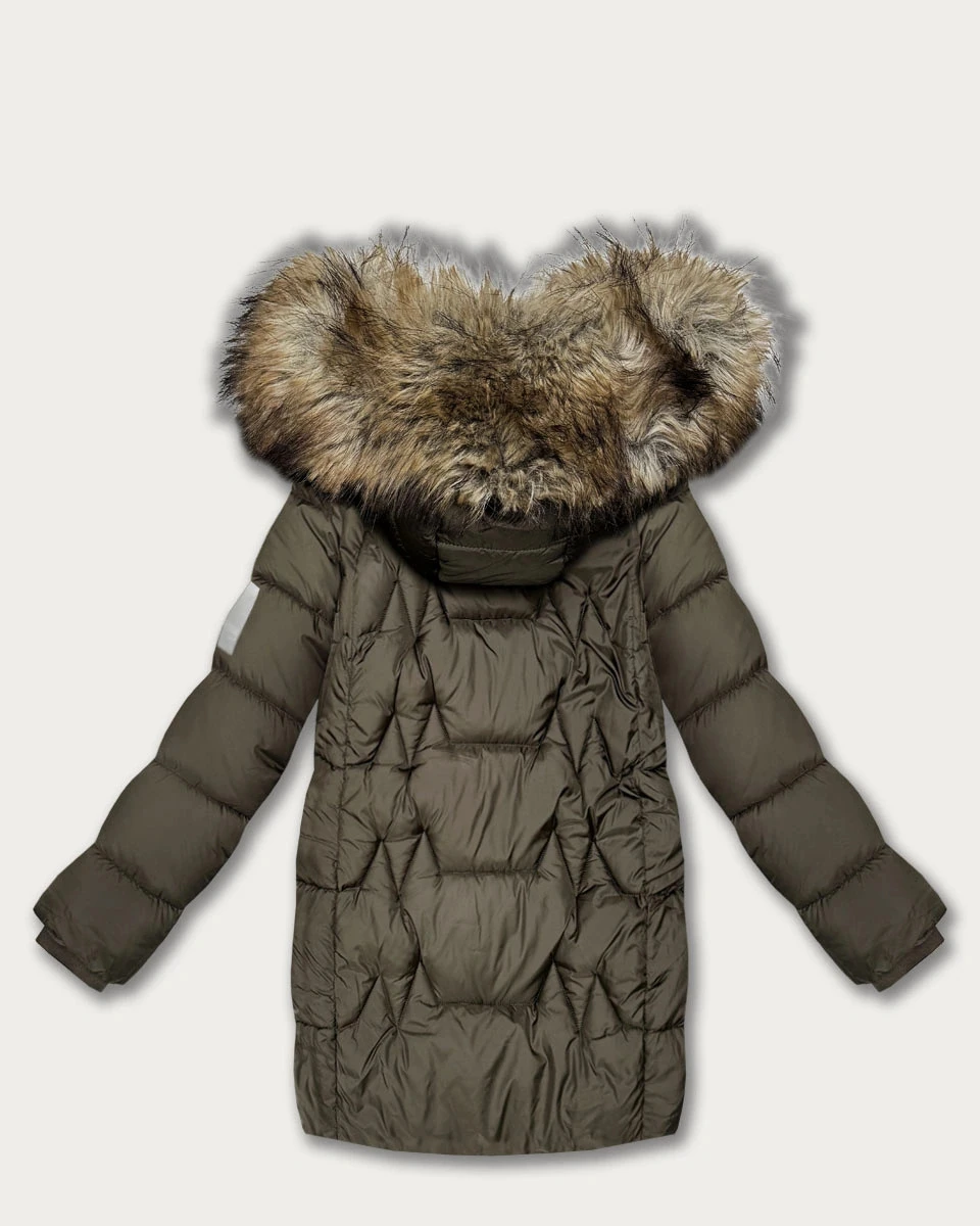 Dámská zimní bunda v barvě khaki s kapucí Goodlookin (KK60564)