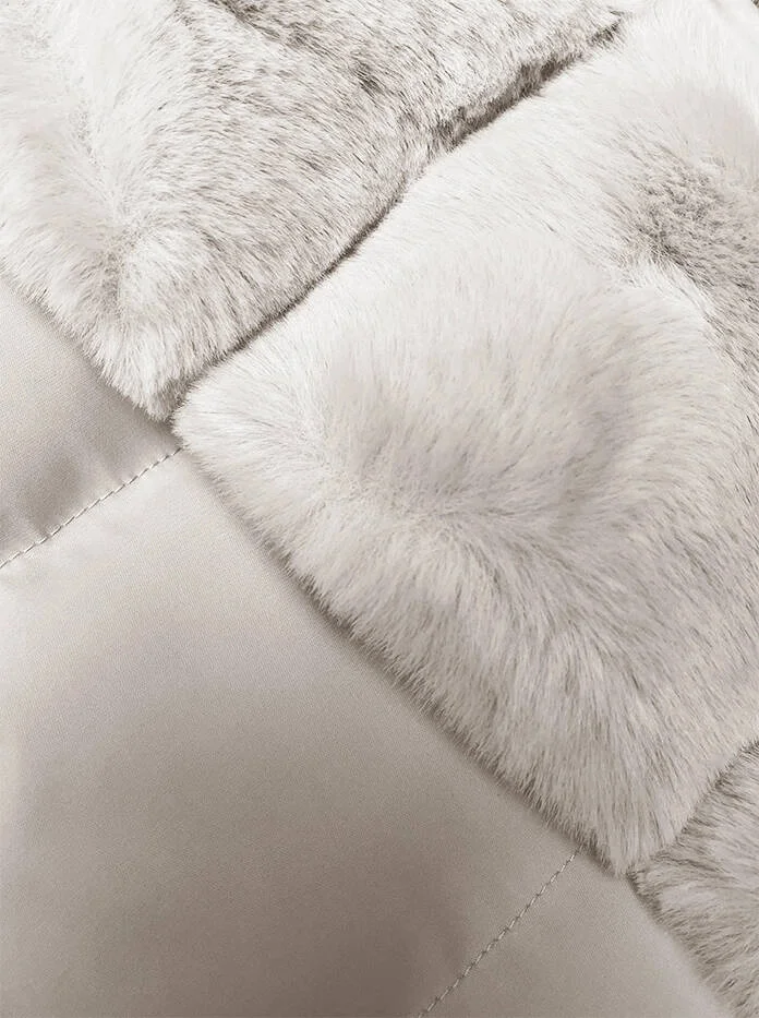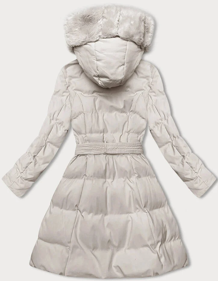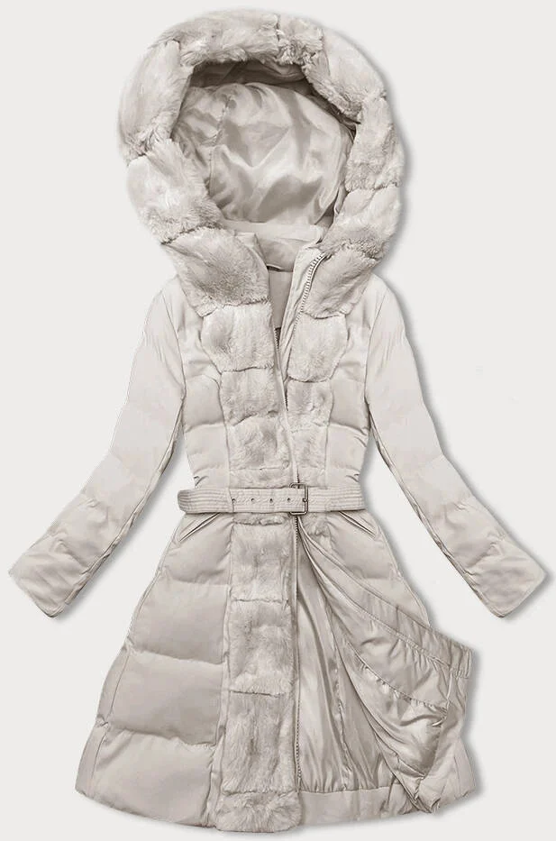 Dámská zimní bunda v ecru barvě s ozdobnou kožešinou (5M3158-254)
