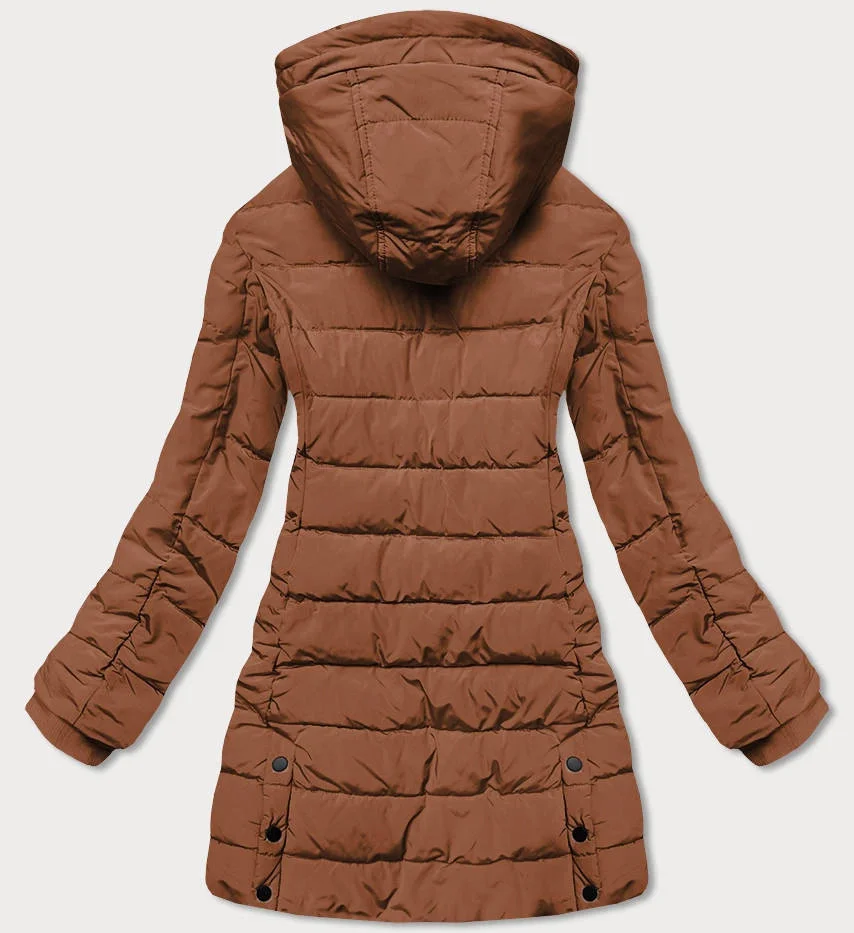 Dámská zimní bunda v karamelové barvě s kapucí (m-21003)