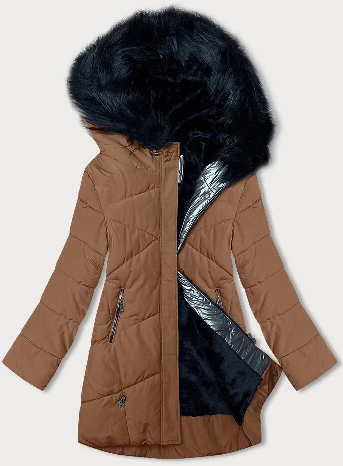 Dámská zimní bunda v karamelové barvě s kožešinou model 21246621 - MELYA MELODY