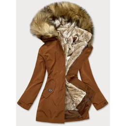 Dámská zimní bunda v karamelové barvě s odepínací kožešinovou podšívkou (m-21005)