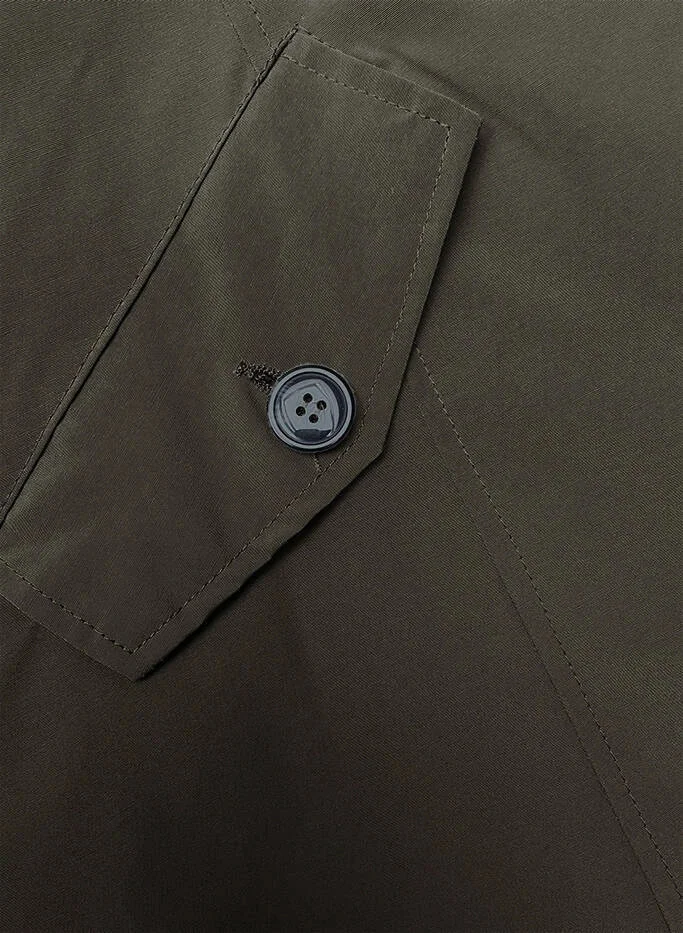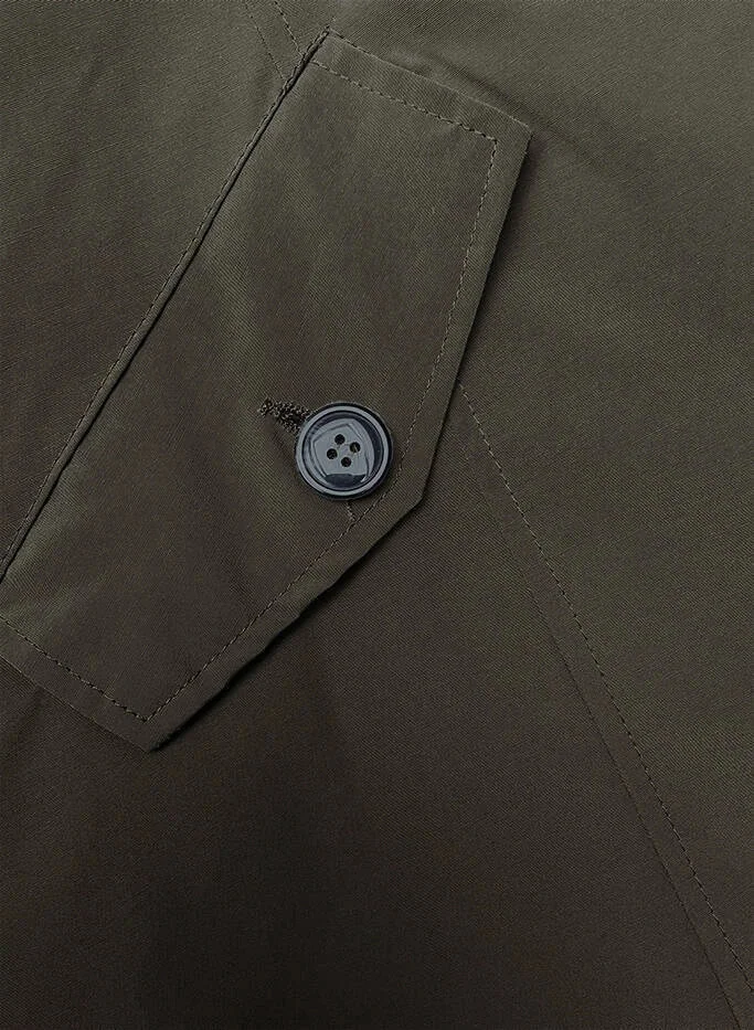 Bunda je lehce vypasovaná, je zateplená syntetickou péřovou výplní, má dvě kapsy a zapíná se zipem a panelem s knoflíky. Model má kapuci olemovanou kožešinou. Zatímco kapuci není možné odepnout, kožešinu odepnout lze. Na koncích rukávů jsou skryté stahovací lemy. Bunda má délku do poloviny stehen.