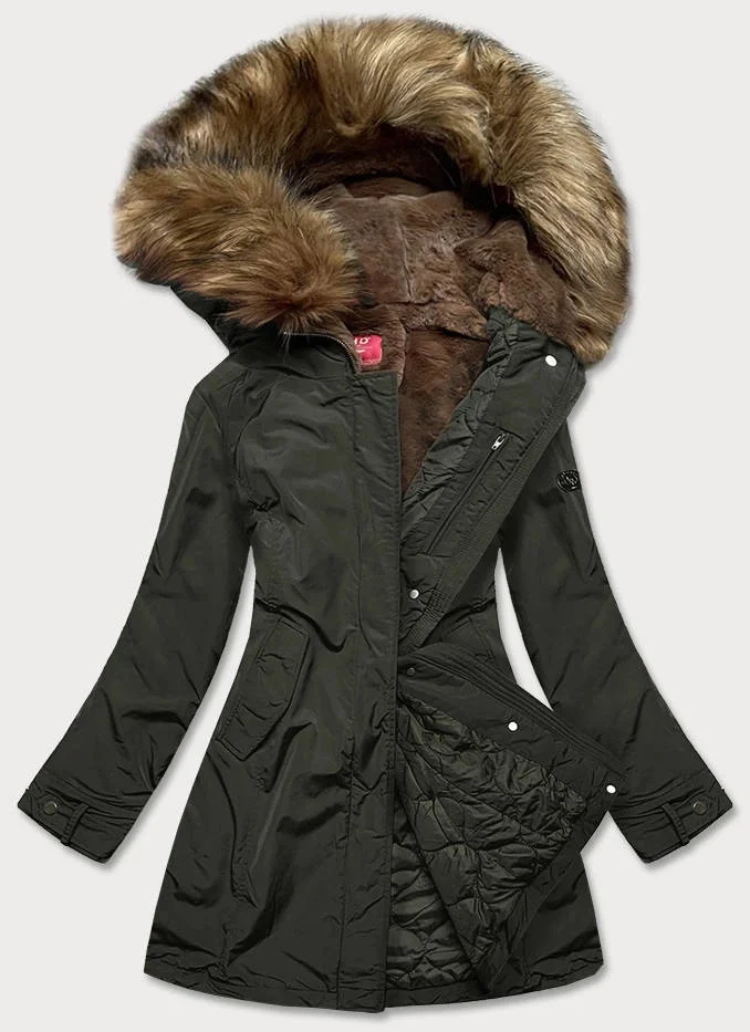 Dámská zimní bunda v khaki barvě (m21309)