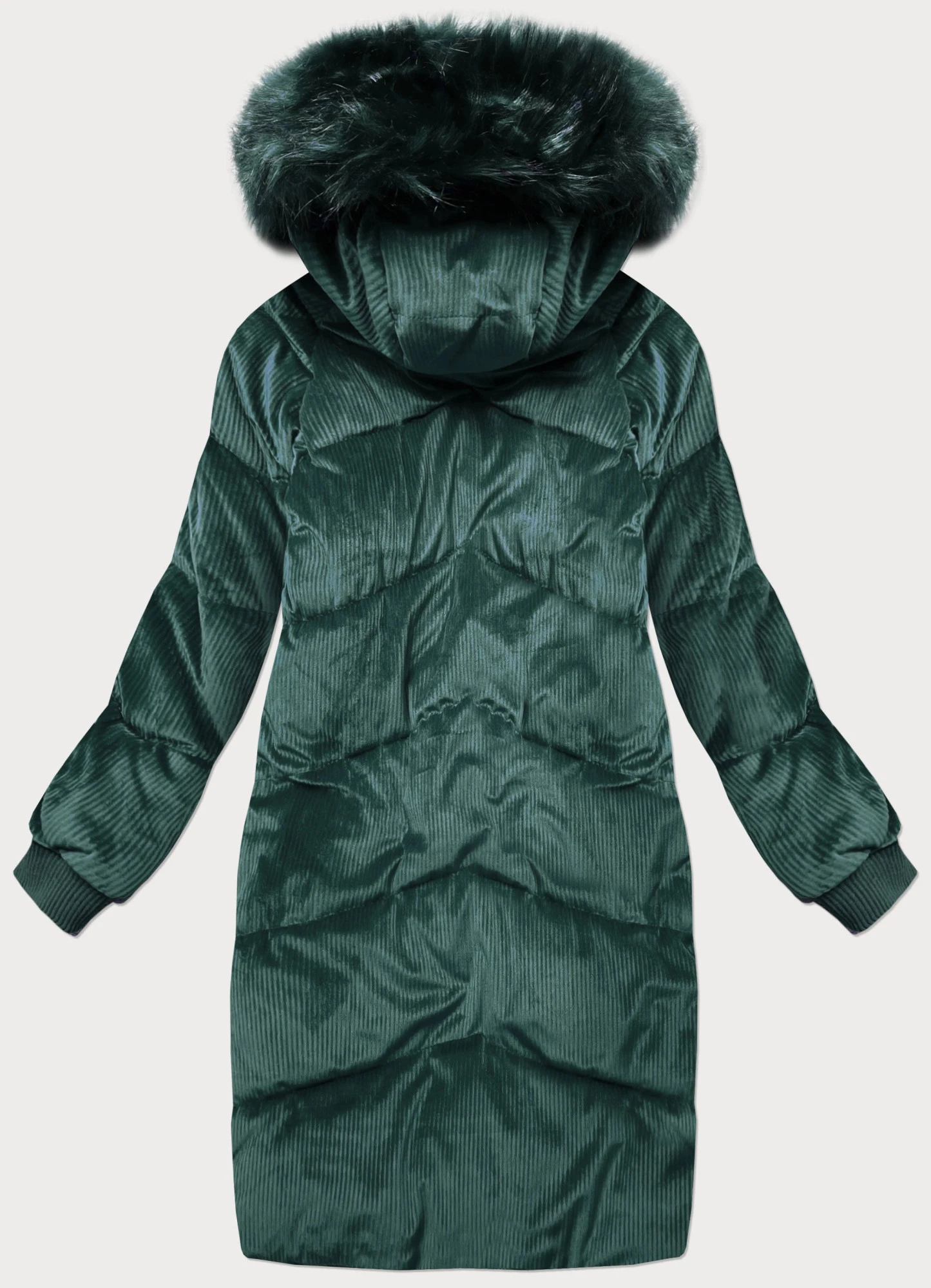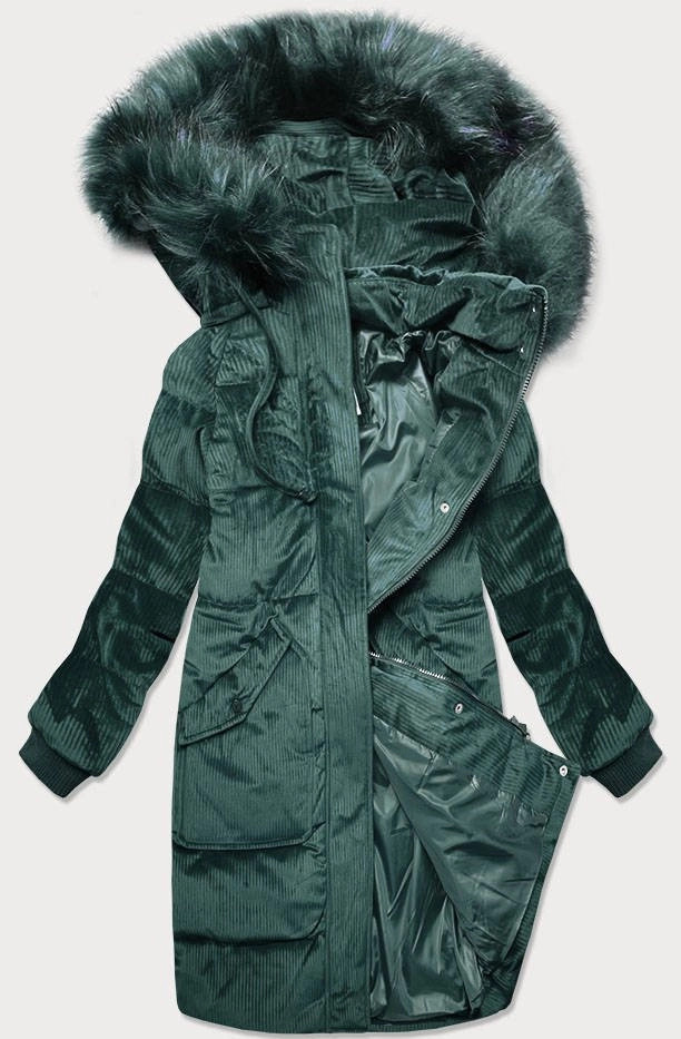 Dámská zimní bunda v lahvově zelené barvě s kapucí model 21773173 - Libland