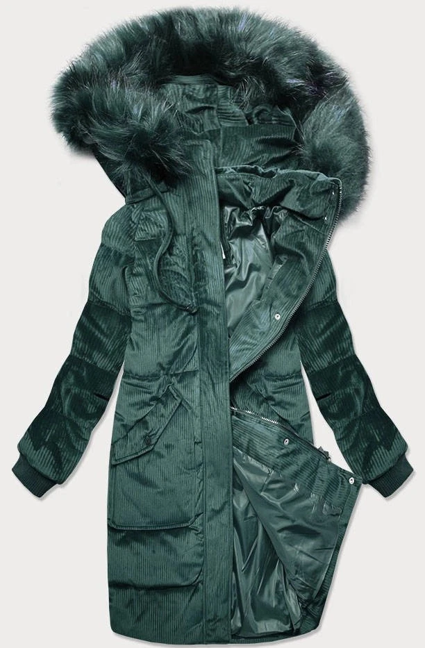 Přidání recenze k Dámská zimní bunda v lahvově zelené barvě s kapucí model 21773173 - Libland