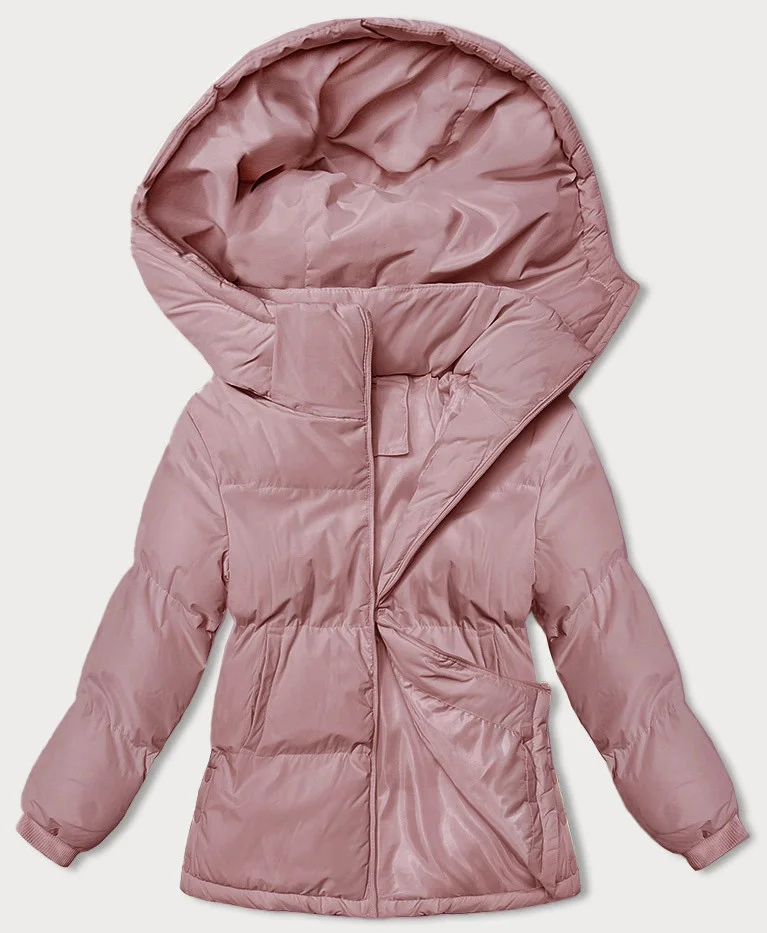 Dámská zimní bunda ve špinavě růžové barvě s kapucí model 21248406 - J.STYLE