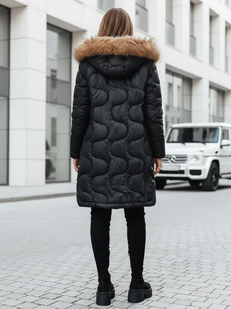 Hřejivá prošívaná bunda s velkou kapucí lemovanou umělou kožešinou je nezbytnou výbavou pro zimní sezónu. Úzký střih s ozdobným prošíváním a dvojitým zipem pro lepší přizpůsobení se bude skvěle hodit na procházku i na zimní nákupy ve městě. Chrání před větrem a mrazem.