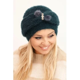 Přidání recenze k Dámská zimní čepice model 21441594 s ozdobou a kožíškem mořská - K-Fashion