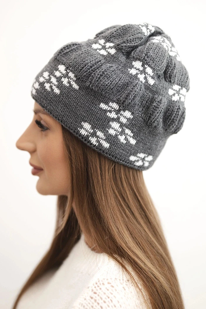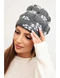 Dámská zimní čepice pletená se vzorem sněhových vloček K463 grafitová