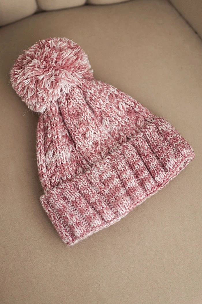 Dámská zimní čepice s bambulí z vlny K424 světle růžová