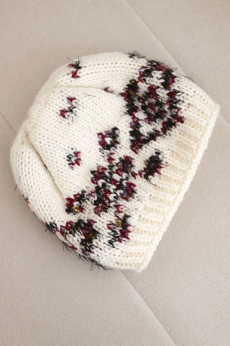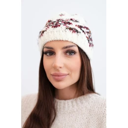 Přidání recenze k Dámská zimní čepice s norským vzorem a silným pletením K351 ecru+czerwony