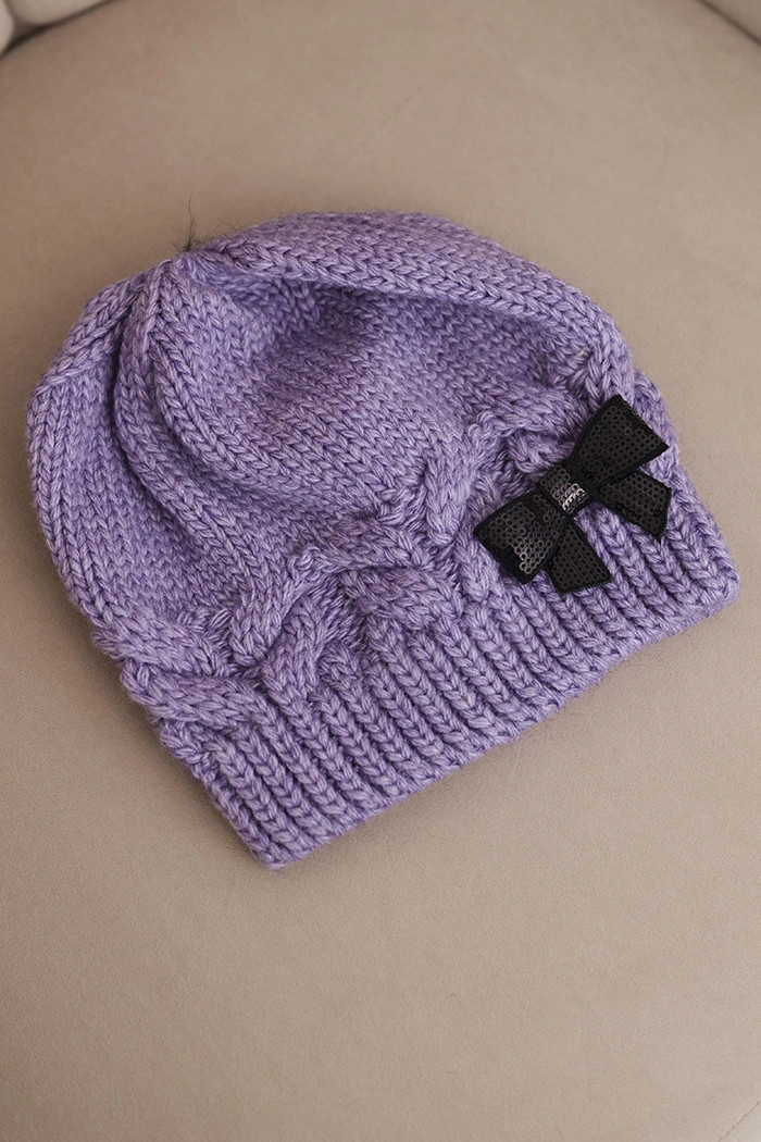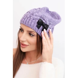 Přidání recenze k Dámská zimní čepice s ozdobnou mašlí a pleteným vzorem K438 světle fialová