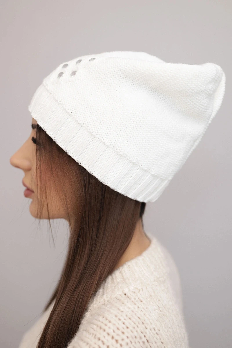 Dámská zimní čepice s ozdobným květinou a zirkony K400 bílá