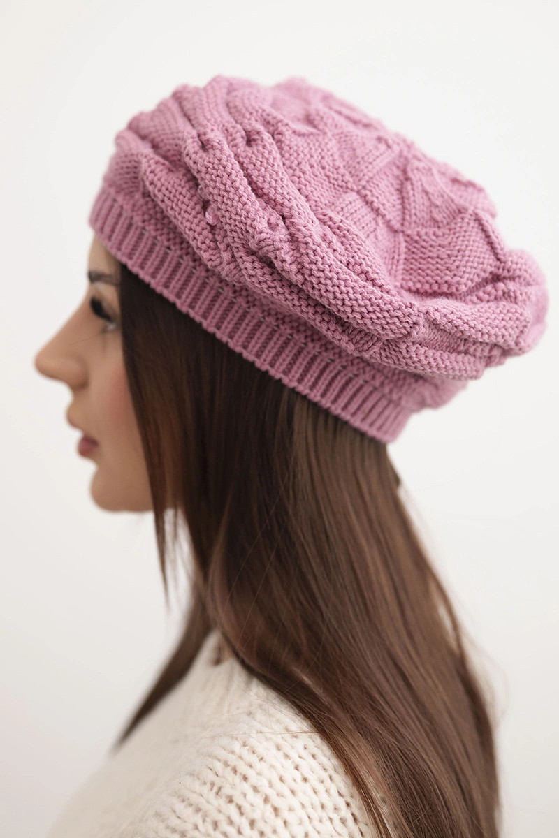 Přidání recenze k Dámská zimní čepice s ozdobným pletením a fialová model 21878103 - K-Fashion