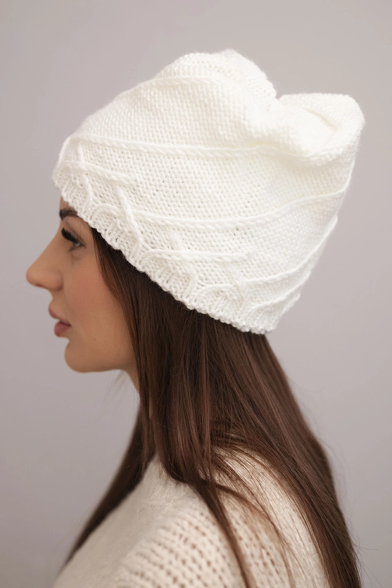 Dámská zimní čepice s ozdobným pletením a klasickým střihem K372 bílá