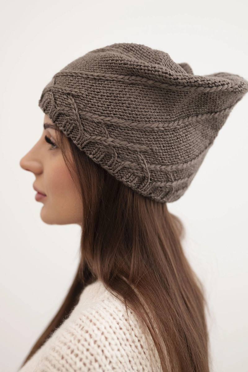 Stylová dámská zimní čepice, vyrobená z měkké pleteniny s efektním, strukturovaným vzorem. Ideálně se hodí do chladných dnů, zajišťuje tepelný komfort a módní vzhled. Elastický materiál se dobře přizpůsobuje tvaru hlavy, netlačí a zachovává svůj tvar.