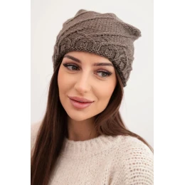 Dámská zimní čepice s ozdobným pletením a klasickým střihem K372 cappuccino