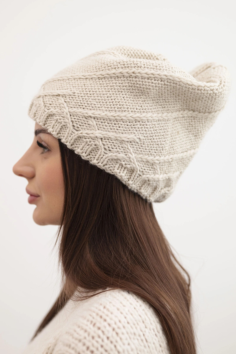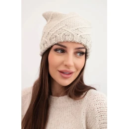 Přidání recenze k Dámská zimní čepice s ozdobným pletením a střihem béžová model 21878057 - K-Fashion