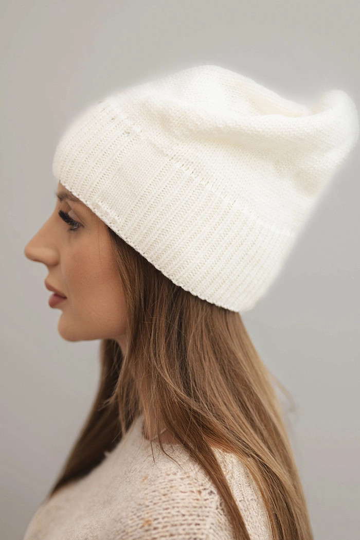 Dámská zimní čepice s vlnou a jemnou výzdobou ecru