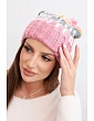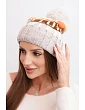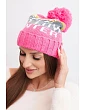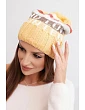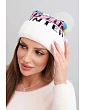 Dámská zimní čepice s vlnou a nápisem s velkým bambulí K422 bílá