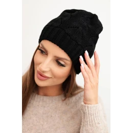 Dámská zimní čepice s vlnou a strukturální pleteninou K432 černá