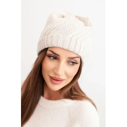 Dámská zimní čepice s vlnou a zdobením z džetů K480 béžová