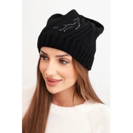 Dámská zimní čepice s vlnou a zdobením z džetů K480 černá