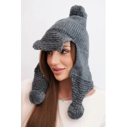 Dámská zimní čepice s vlnou, kšiltem a bambulemi K475 grafitová
