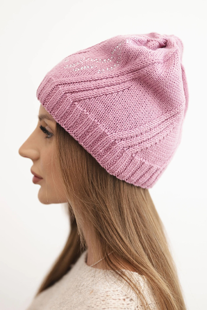 Dámská zimní čepice s vlnou volného střihu model 21783005 růžová - K-Fashion