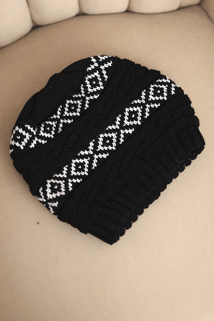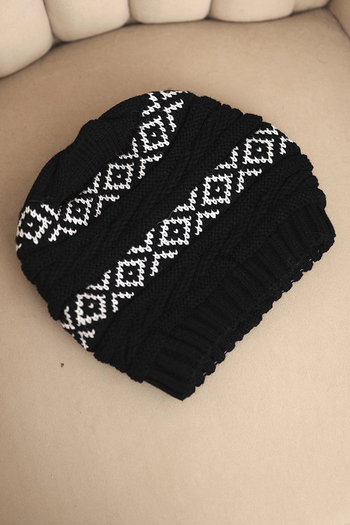 Dámská zimní čepice s vzorem a vlnou K425 černá