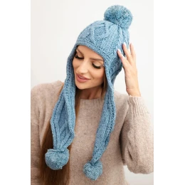 Roztomilá dámská čepice ideální na zimní dny. Model s klasickým pletením a dekorativním bambulí na vrchu, navíc vybavený dlouhými boky zakončenými bambulemi – nejenže vypadá efektně, ale také účinně chrání před chladem. Prodlužované boky lze nechat volně nebo uvázat pod bradou, aby se zajistilo ještě více tepla.
