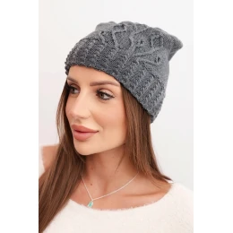 Dámská zimní čepice vlněná s ozdobným grafitová model 21866352 - K-Fashion