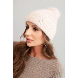 Přidání recenze k Dámská zimní čepice z huňaté pleteniny a s knoflíkem pudrově růžová model 21441814 - K-Fashion