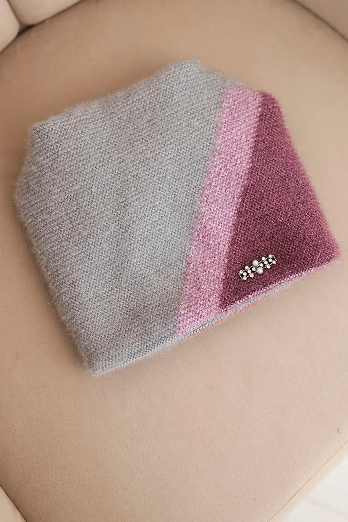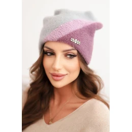 Přidání recenze k Dámská zimní čepice z huňaté pleteniny s ozdobnou aplikací šedá + tmavě fialová