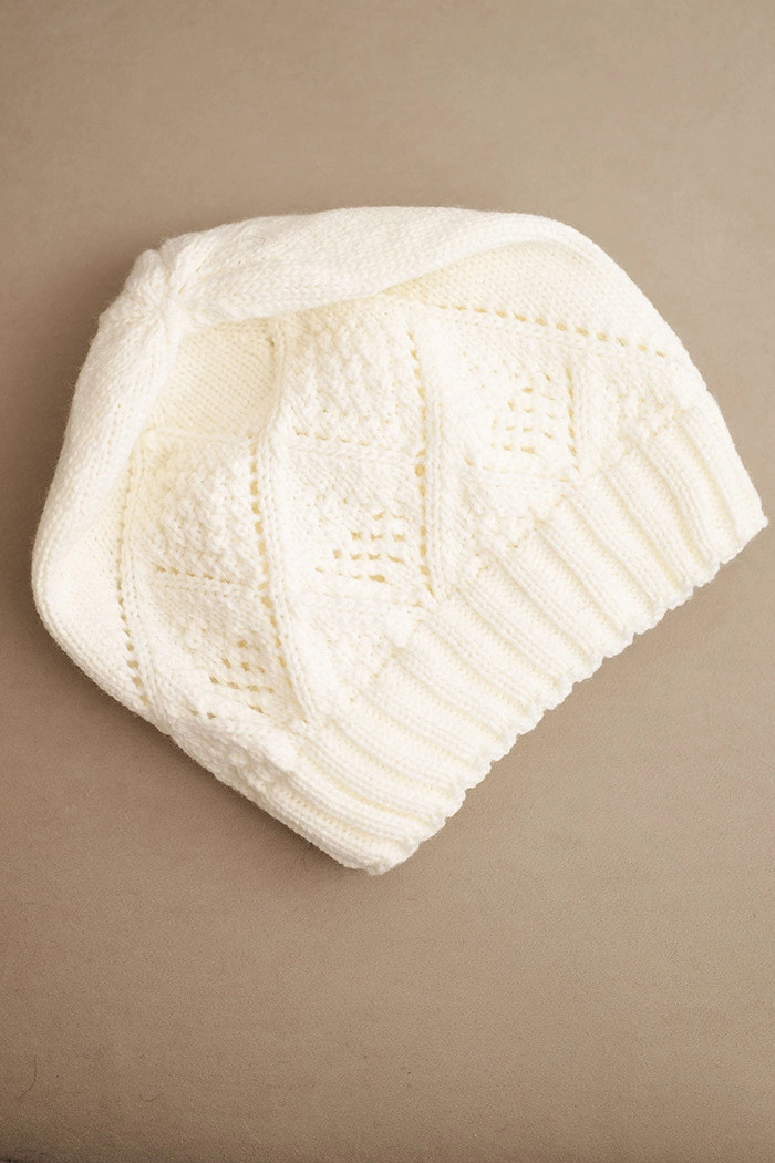 Dámská zimní čepice z vlny a s geometrickým vzorem model 21753187 ecru - K-Fashion