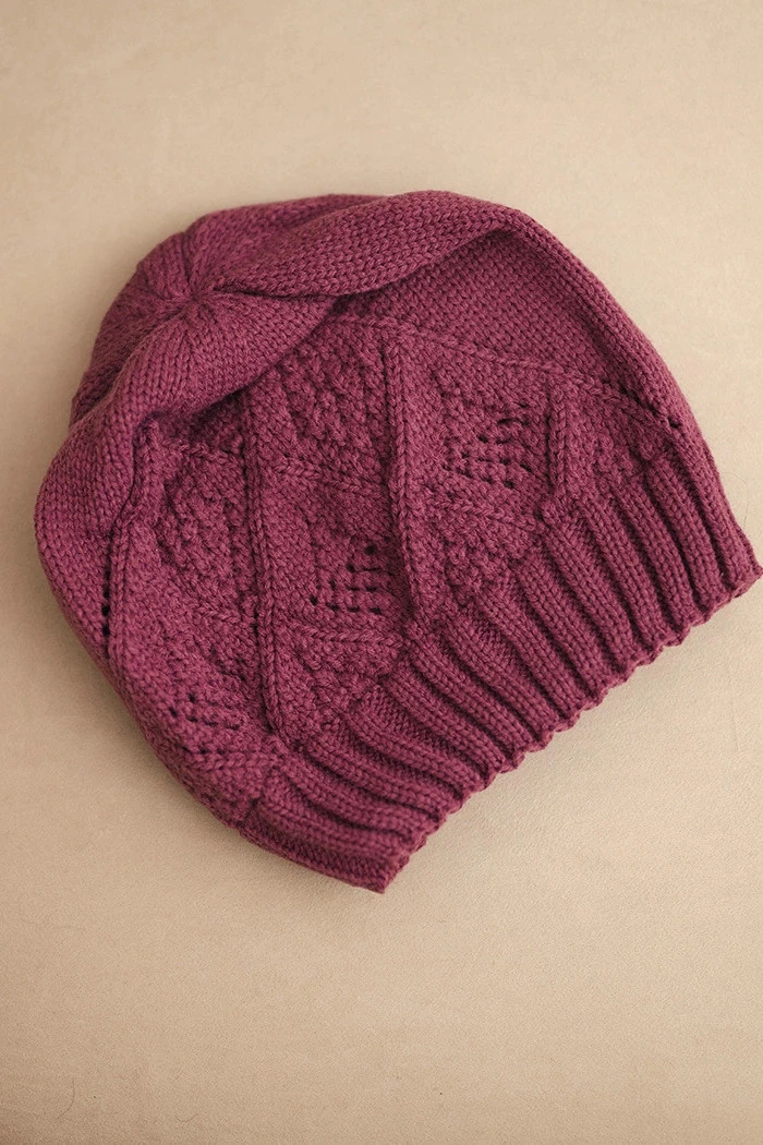Dámská zimní čepice z vlny a s geometrickým vzorem model 21753189 tmavě fialová - K-Fashion