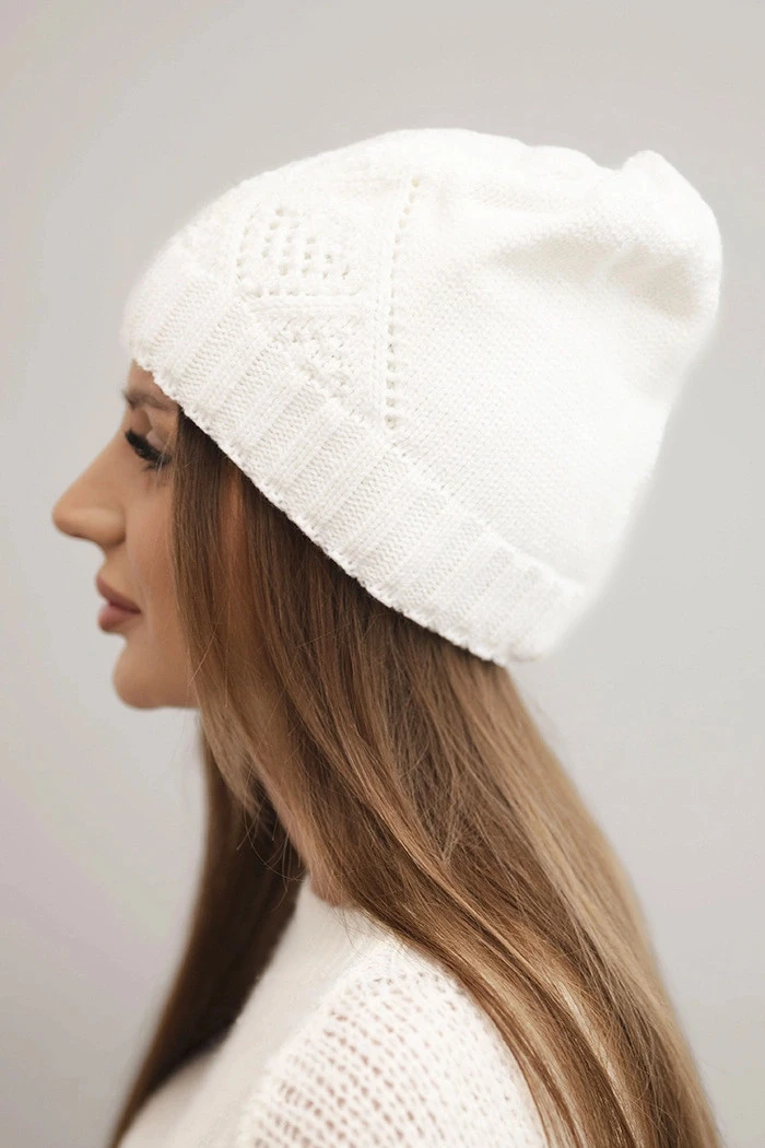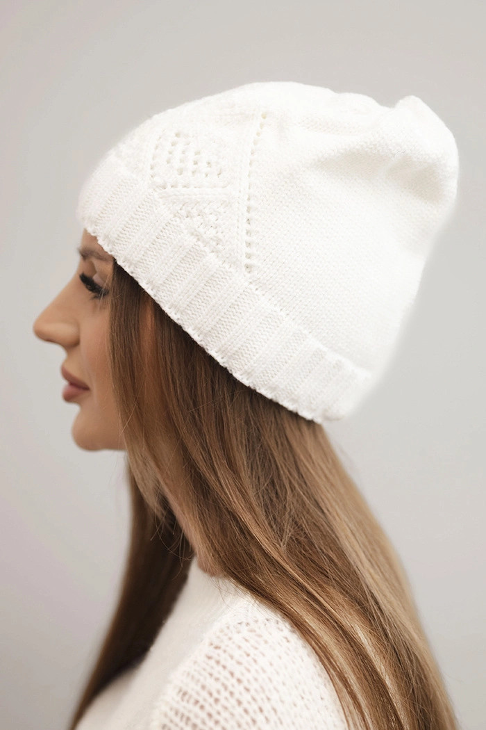Dámská zimní čepice z vlny a s geometrickým vzorem model 21753195 bílá - K-Fashion